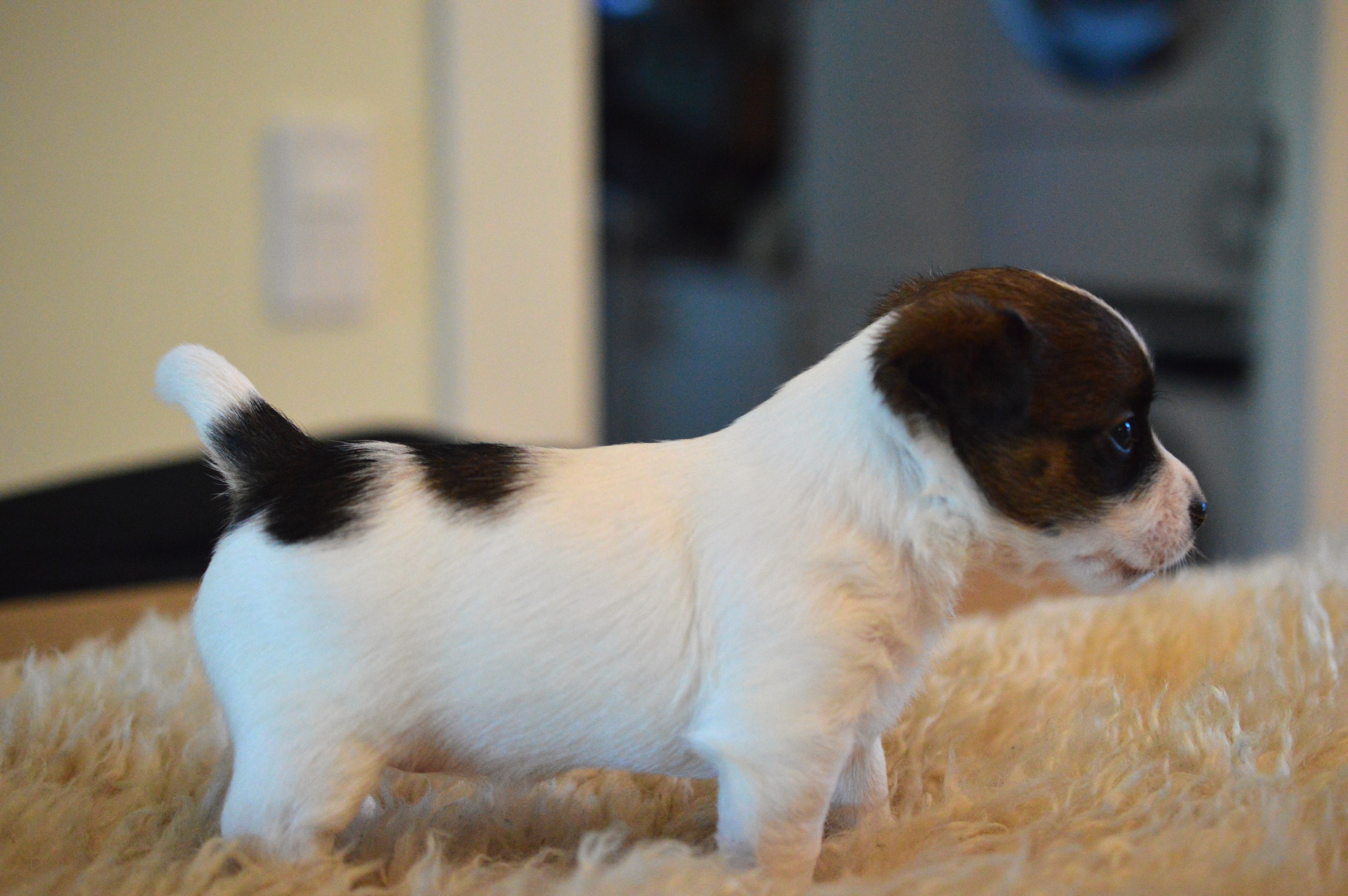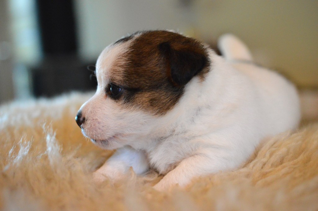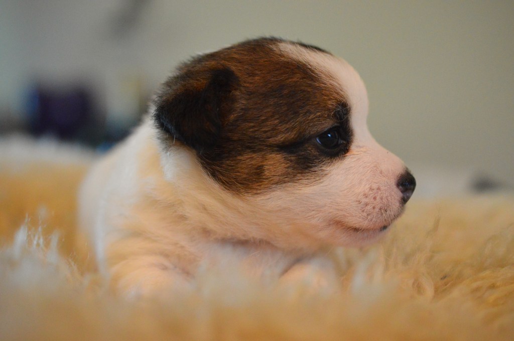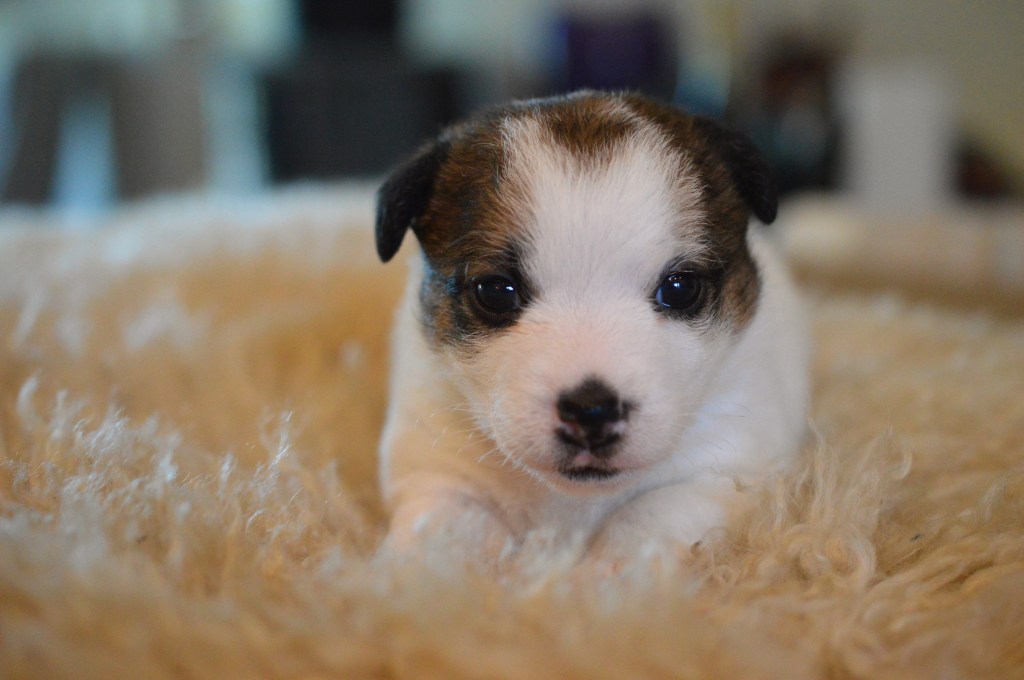 Här ovan ser ni Terrieristens Actinidia Deliciosa. Hon föddes som nummer två och är den minsta valpen i kullen, en näpen liten brud som är mycket lik mamma Ronja. Actinidia Deliciosa är det vetenskapliga namnet för Kiwi. ”Kiwi” är vår lilla buse, det spritter i kroppen och hon är alltid pigg på lek. Eftersom hon är lite mindre än sina syskon så är hon lite snabbare i vändningarna och far ofta iväg som en liten studsboll.