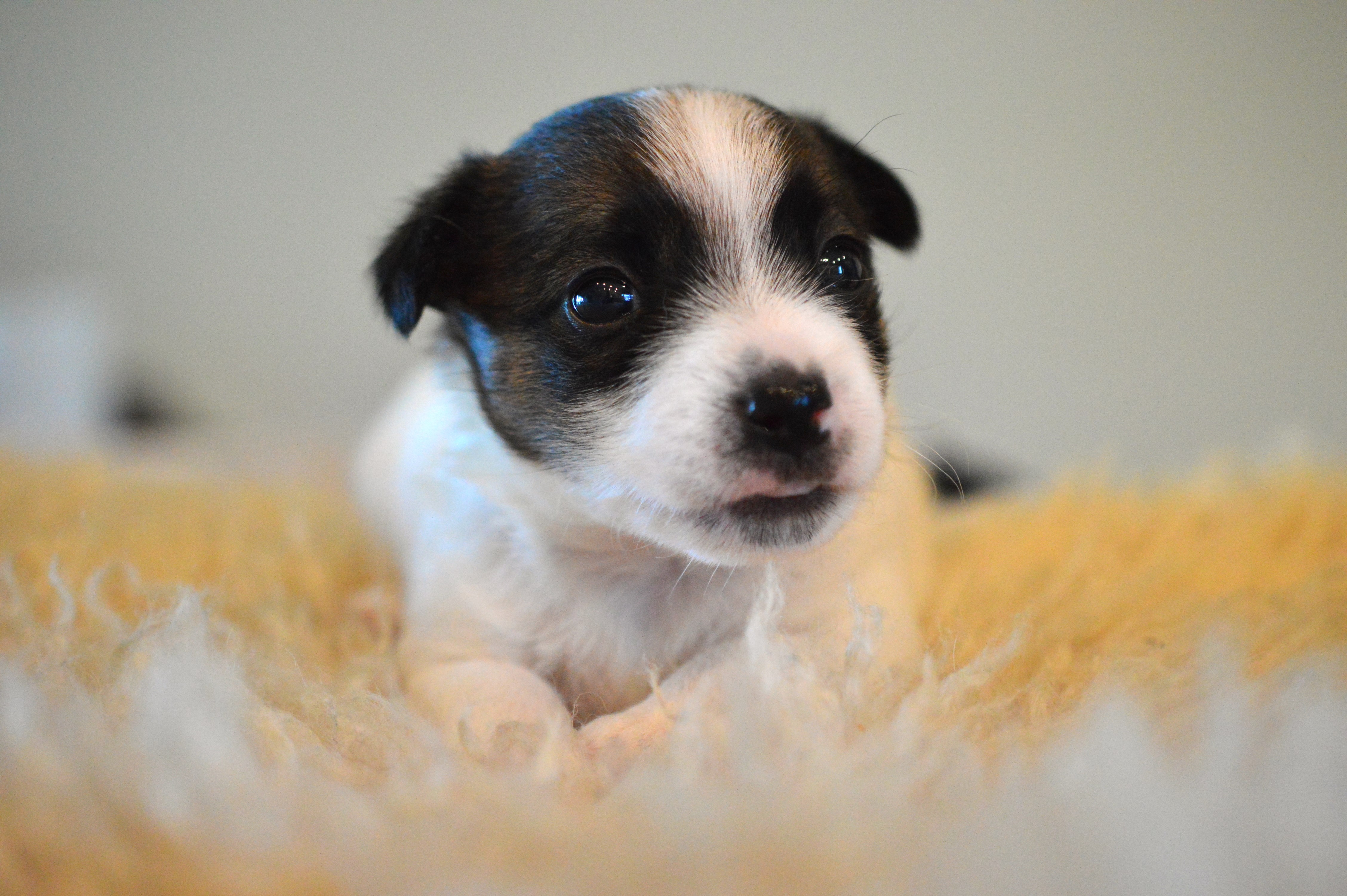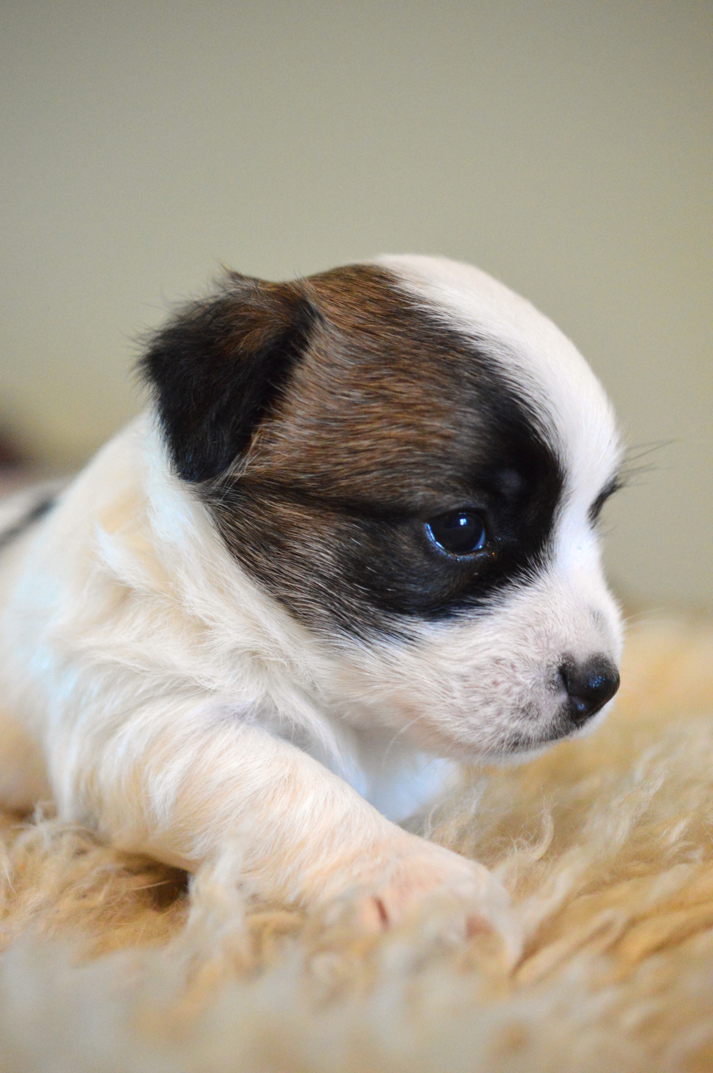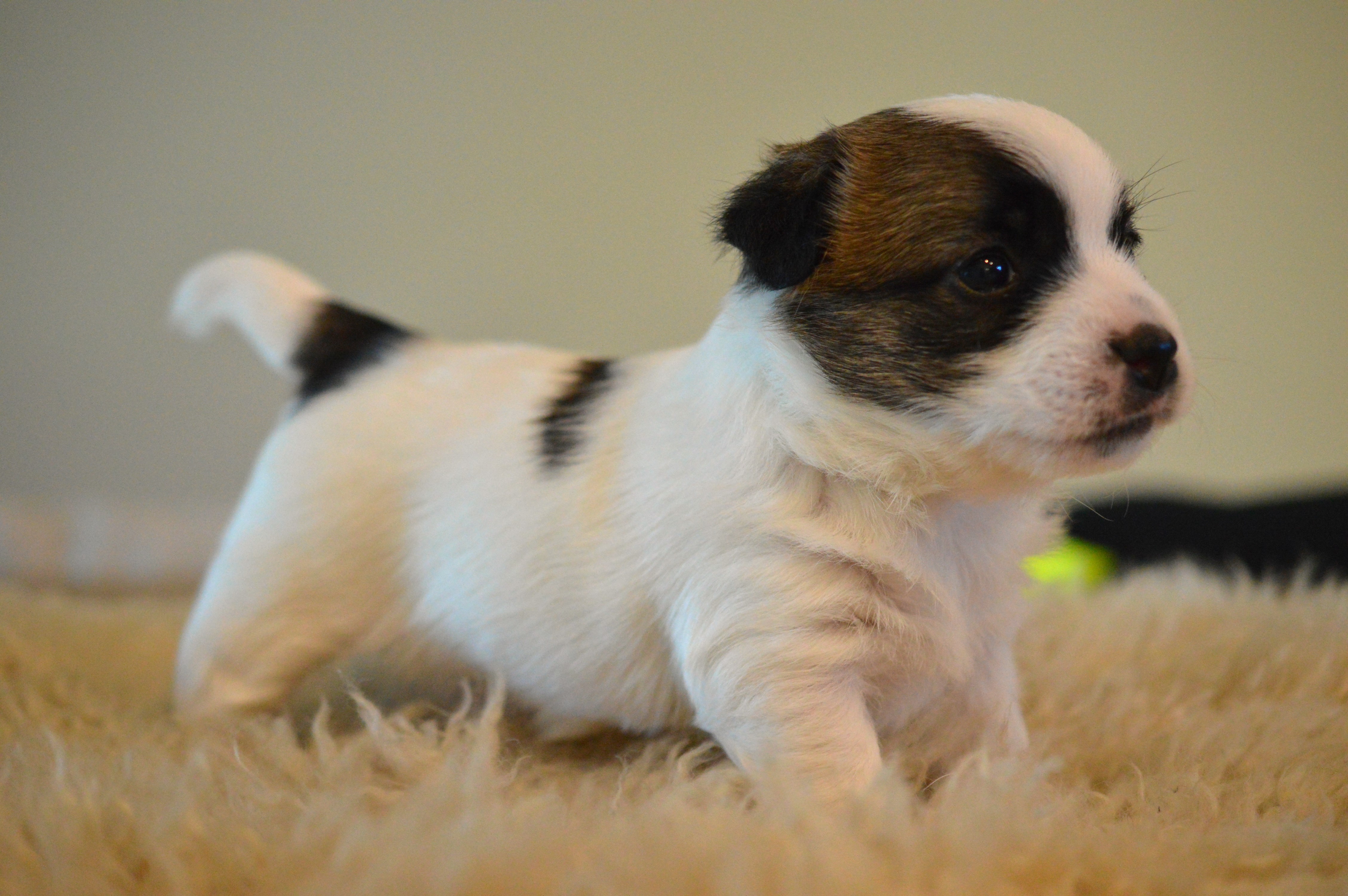 Här ovan ser ni Terrieristens Actinidia Deliciosa. Hon föddes som nummer två och är den minsta valpen i kullen, en näpen liten brud som är mycket lik mamma Ronja. Actinidia Deliciosa är det vetenskapliga namnet för Kiwi. ”Kiwi” är vår lilla buse, det spritter i kroppen och hon är alltid pigg på lek. Eftersom hon är lite mindre än sina syskon så är hon lite snabbare i vändningarna och far ofta iväg som en liten studsboll.