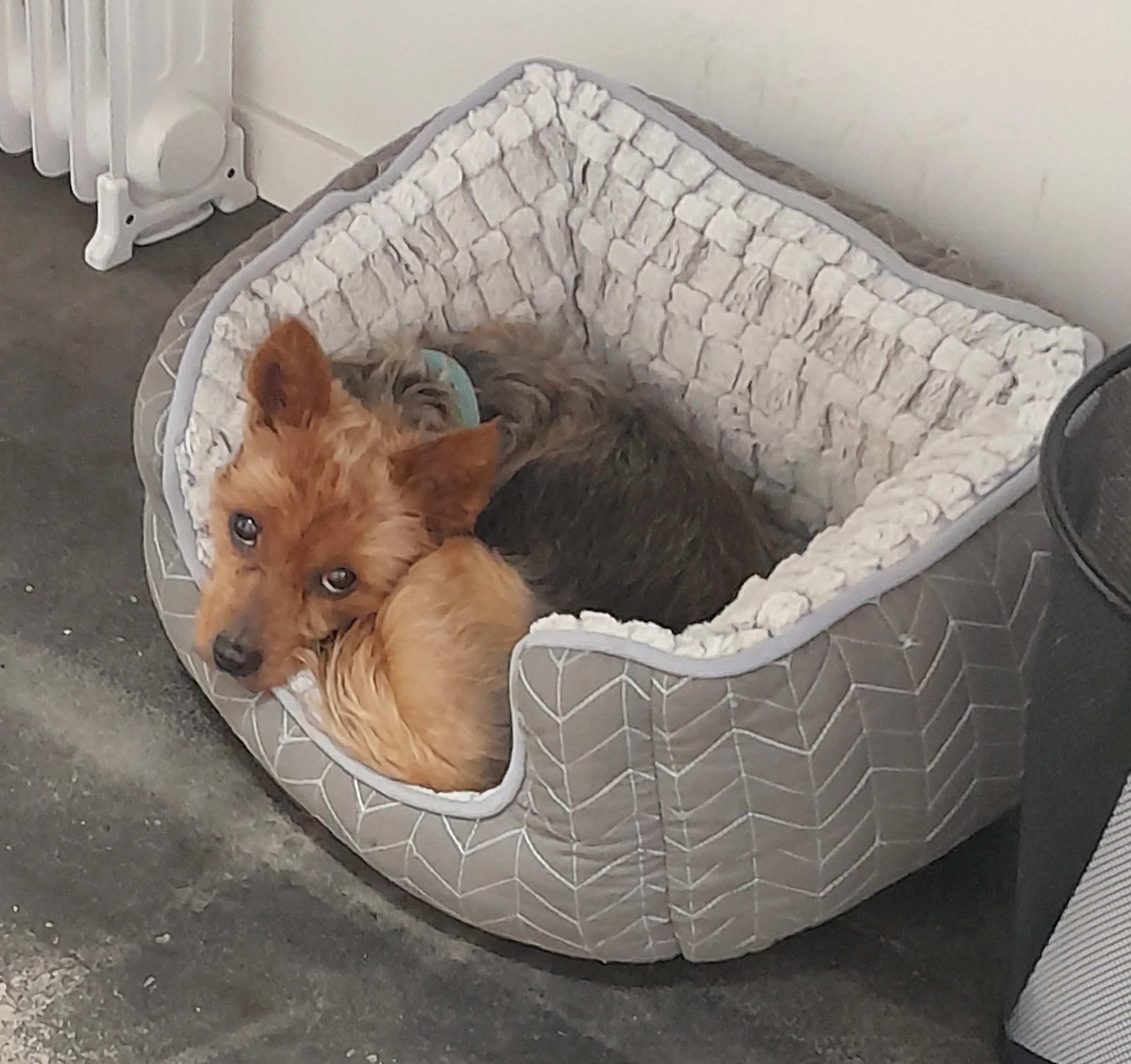 Siri är en omplaceringshund som hamnade hos oss av en slump för några år sedan. Hon är en korsning med största delen Yorkshire terrier. En go och glad figur om än med sina utmaningar eftersom hon varit med om en del i livet. Siri är ungefär 11år gammal. Hon bor nuförtiden mest hos min faster där hon trivs utmärkt att vara ensamhund tillsammans med två kattor.