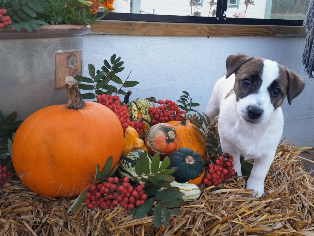 Mango, eller Maggie som hon oftast kallas är den allra första valpen som föddes hos oss. Hon kom först av alla valpar i kullen och hon var den största. Maggie växer och utvecklas jättefint och hon är en underbar och gosig individ. Krävande och vet minsann vad hon vill.. och inte vill göra. Hon är smart precis som en russell ska vara och lär sig snabbt nya saker.